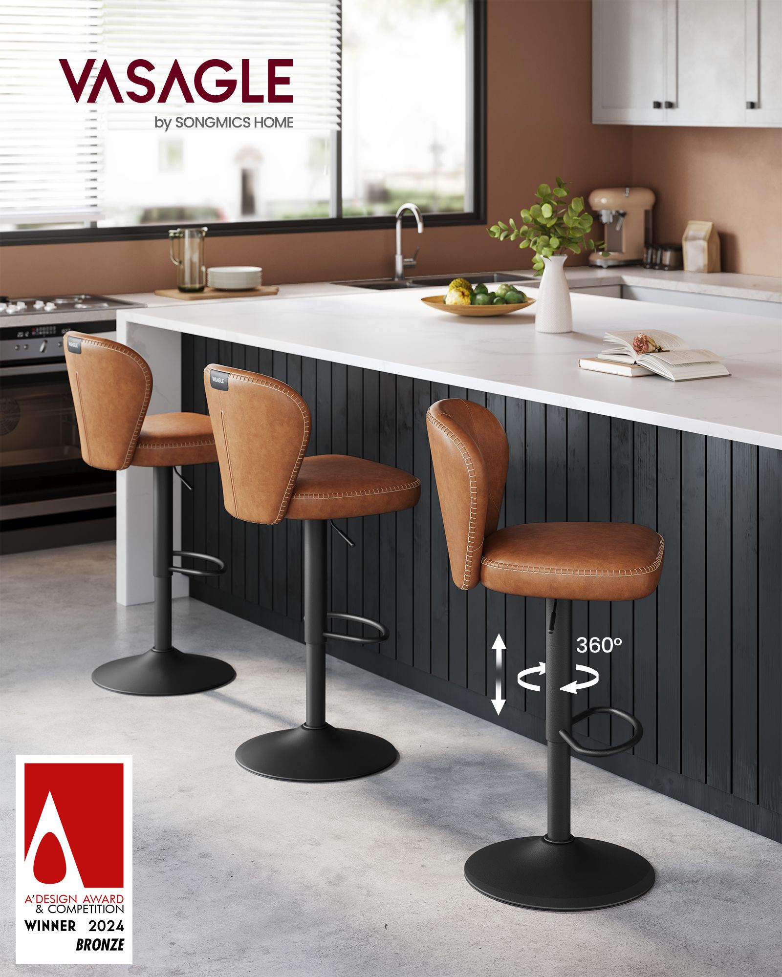 Šis baro kėdžių komplektas yra puikus pasirinkimas jūsų virtuvei ar barui. Karamelinės rudos ir juodos spalvos derinys suteikia elegancijos ir modernumo jūsų interjerui.