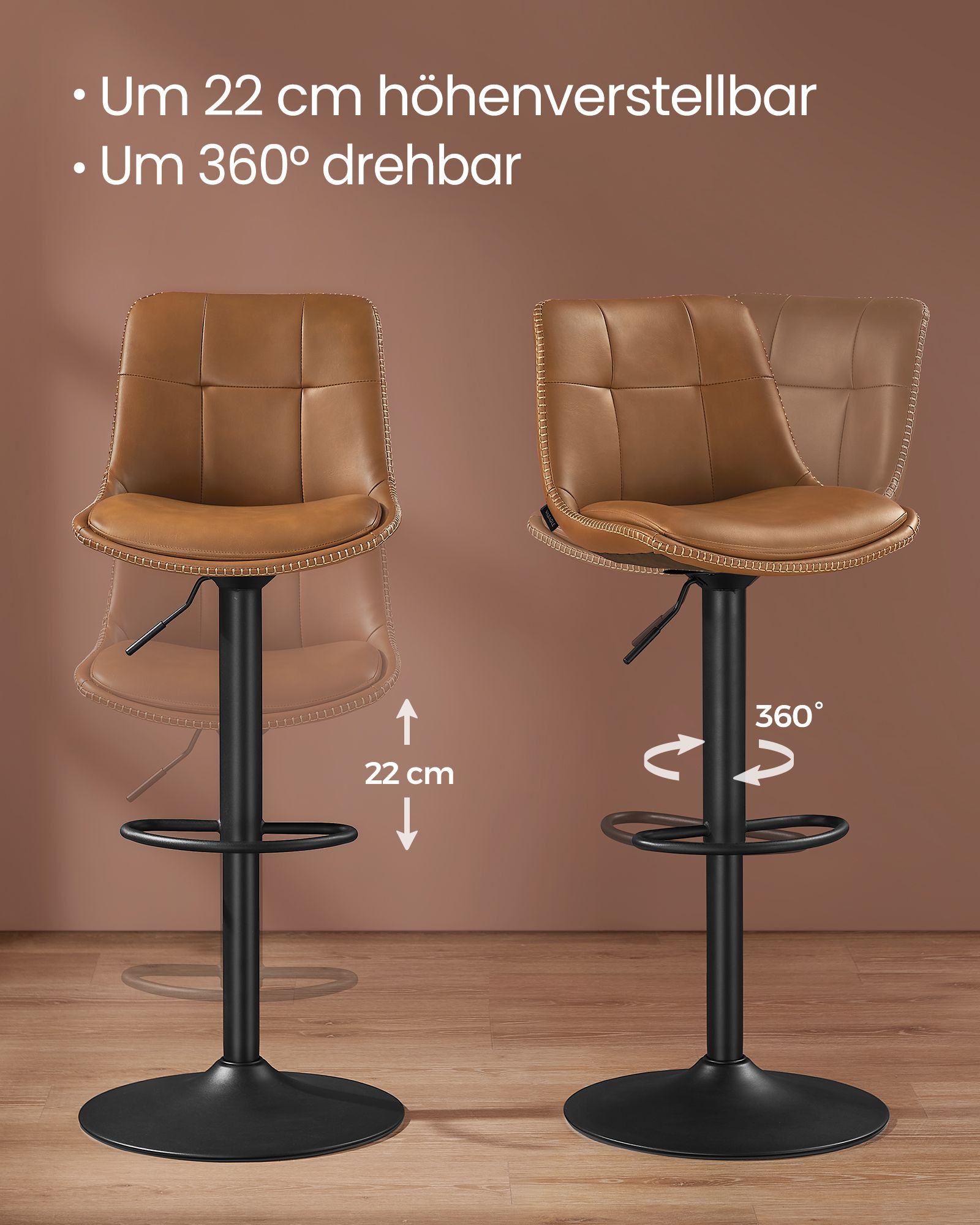 Šis baro kėdžių komplektas yra puikus pasirinkimas jūsų virtuvei ar barui. Karamelinės rudos spalvos kėdės suteikia elegancijos ir šilumos jūsų interjerui.
