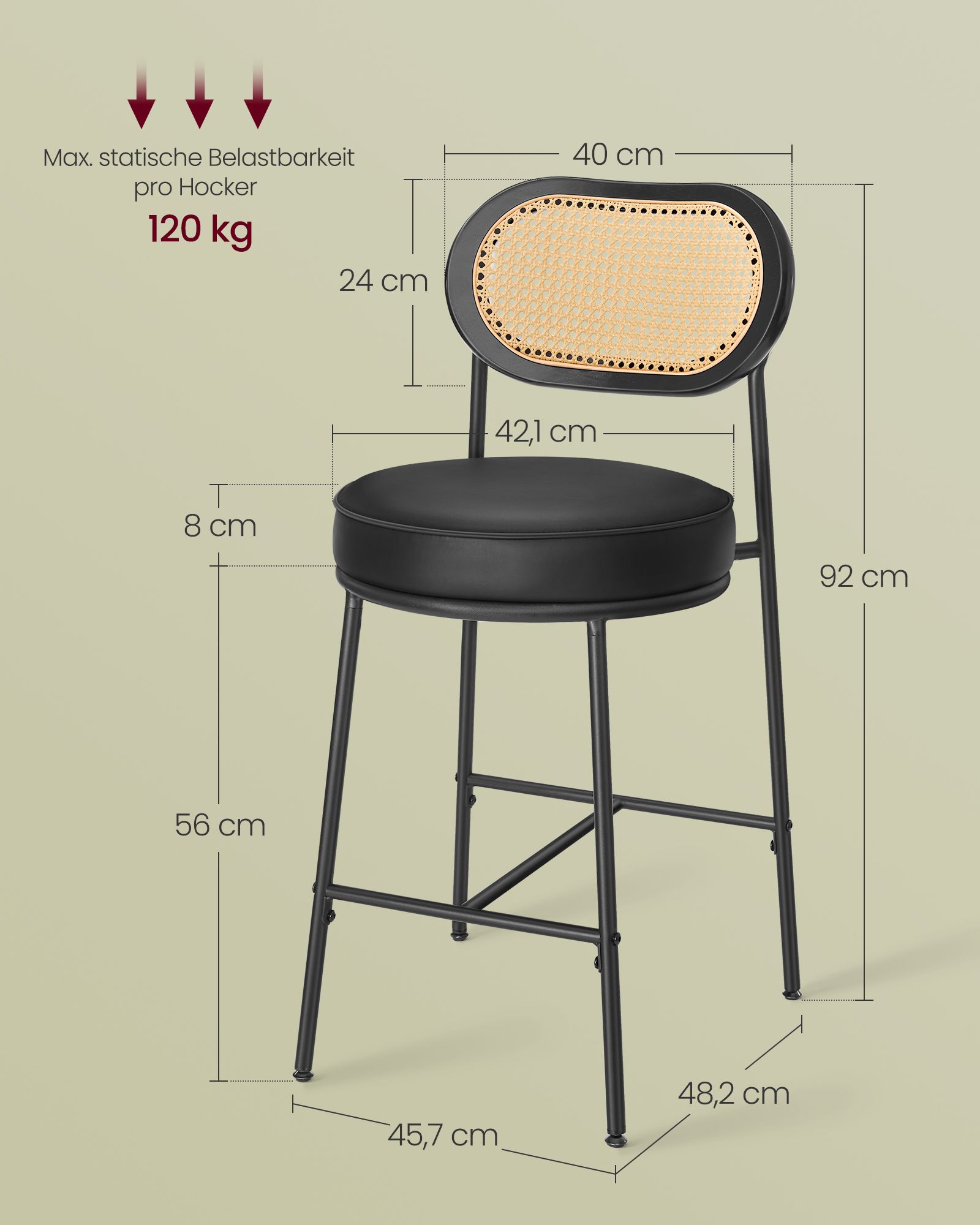 Kėdės pagamintos iš aukštos kokybės medžiagų, užtikrinančių ilgaamžiškumą ir patogumą. Kiekvienos kėdės matmenys yra 48,2 x 45,7 x 92 cm, o bendras komplekto svoris siekia 11,4 kg.
