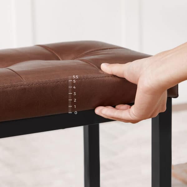 Spalva: ruda sėdynė ir juodas rėmas suteikia elegancijos ir modernumo jūsų erdvei. Kėdės pagamintos iš kokybiškų medžiagų: medžio drožlių plokštė (MDP) , PU, putplasčio ir plieno, užtikrinančių ilgaamžiškumą ir patogumą.