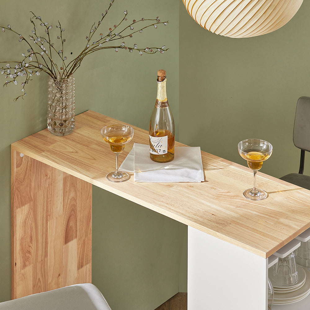 Pagamintas iš aukštos kokybės MDF (E1) ir guminio medžio, šis baro stalas yra tvirtas ir ilgaamžis. Didelė stalo plokštė suteikia pakankamai vietos daiktų laikymui, o jo matmenys – 108 cm ilgis, 40 cm plotis ir 105 cm aukštis – leidžia jį lengvai pritaikyti įvairiose erdvėse.