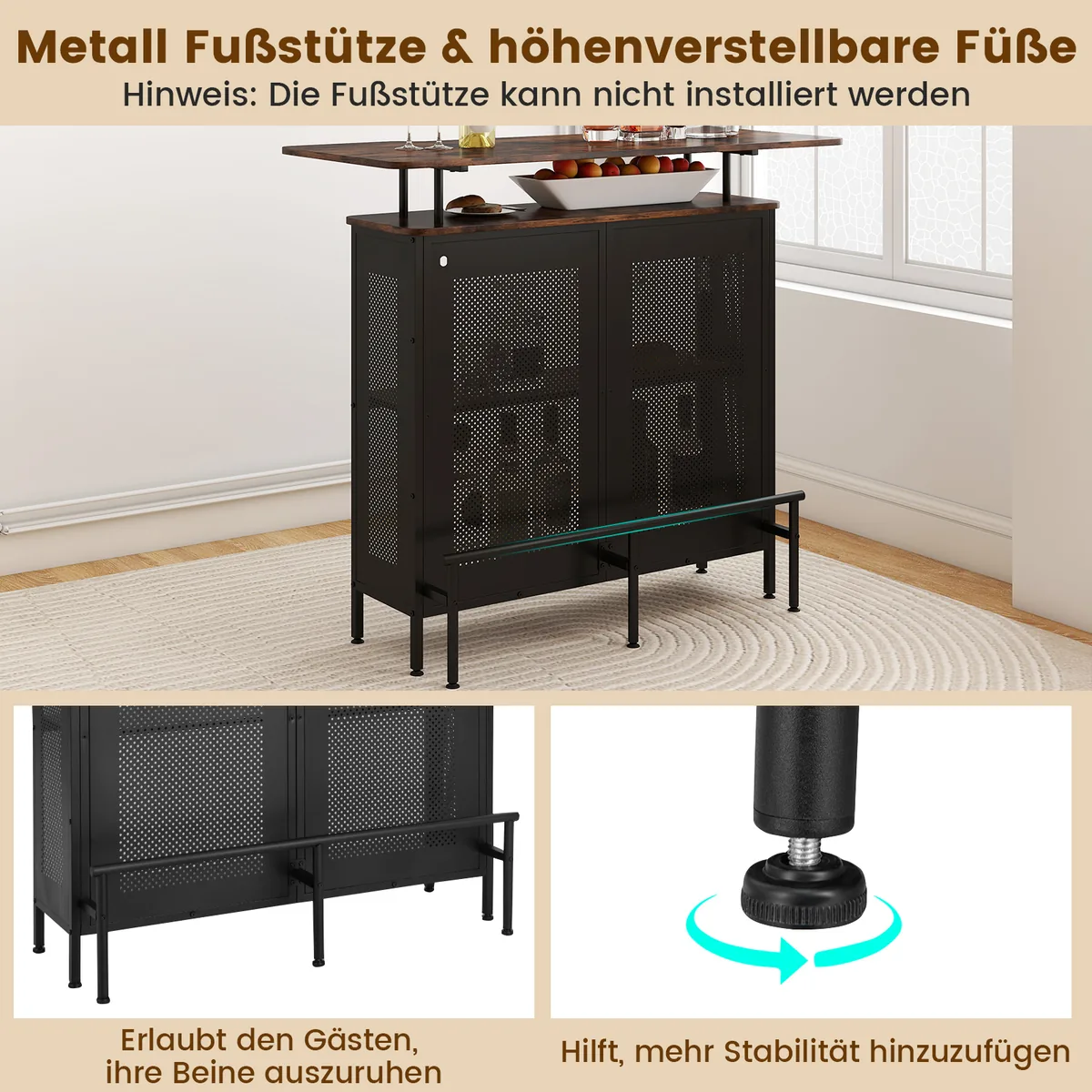 • Įrengta patogi metalinė pėdų atrama svečių kojoms.