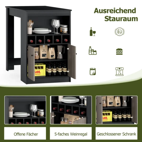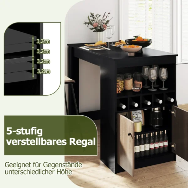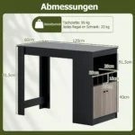 Baro stalas 120x60x91,5 cm juodos spalvos – praktiškas ir įvairiapusis baldas, tinkantis virtuvei, valgomajam ar namų barui. Erdvus stalviršis ir talpi spintelė su reguliuojamomis lentynomis suteikia patogumą pietaujant ir saugant indus. Baro stalas puikiai dera prie įvairių interjerų.