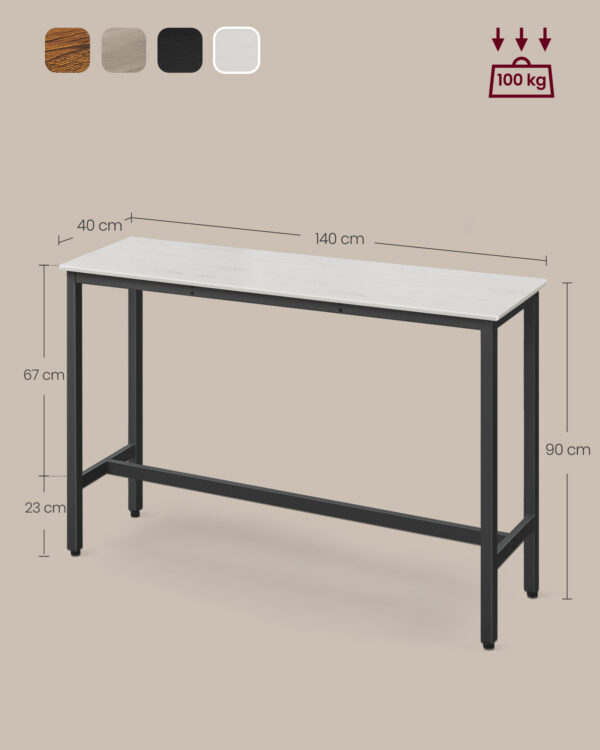 Įneškite modernumo ir elegancijos į savo namus ar komercinę erdvę su šiuo stilingu baro stalu. Jo minimalistinis dizainas ir kontrastingos spalvos suteikia išskirtinumo, o funkcionalumas užtikrina patogumą kasdieniniam naudojimui.