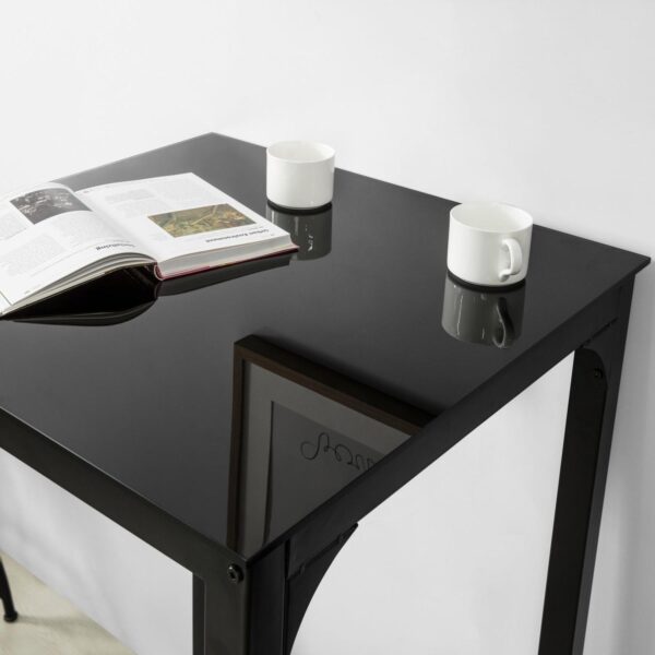 Pagamintas iš aukštos kokybės stiklo ir plieno, šis stalas yra patvarus ir ilgaamžis. Jo matmenys yra 60 cm ilgio, 60 cm pločio ir 100 cm aukščio, o svoris siekia 13,4 kg. Stalas yra išbandytas ir gali atlaikyti iki 75 kg apkrovą.