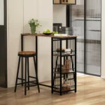 Industrinio stiliaus HOMCOM aukštas stalas yra medinis, juodo plieno rėmas, patrauklus dizainas ir tvirtumas. Trys lentynos suteikia praktiškos vietos daiktams laikyti, o dėl patvaraus paviršiaus jį lengva prižiūrėti.