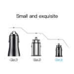 Negali būti mažesnis. Atsikratykite sudėtingo dizaino, sutaupykite brangios vietos automobilyje. Tik 0,9 cm virš prievado, kai montuojama automobilyje, ranka netrukdo. Išmanus IC lustas, naudojamas daugybiniams moduliams integruoti.Savaime prisitaikanti srovės taupymo ir mobiliojo telefono apsauga. Dvi USB išvesties dalijasi įkrovimo malonumu. 2.1 Greitas įkrovimas viename prievade iki 3,1 A daugiausia su 2 prievadais.Švelniai mėlynas galios indikatorius patogiau naudoti naktį.Patobulintos neslystančios lapinės spyruoklės abiejose pusėse jautrios kontaktas ir nenutrūksta.Suderinamas su įprastais automobilių modeliais rinkoje.Ypatybės:· Dvi USB prievadai vienu metu įkrauti· Paprasta ir išskirtinė · Išmanusis lustas· 3,1 A srovė· Saugos apsauga