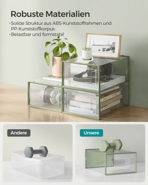 Šios batų dėžės yra puikus sprendimas tiek mažoms, tiek didelėms erdvėms. Jas lengva surinkti ir pritaikyti pagal jūsų poreikius. Pasirinkite mūsų batų dėžes ir mėgaukitės tvarkinga bei estetiška aplinka.