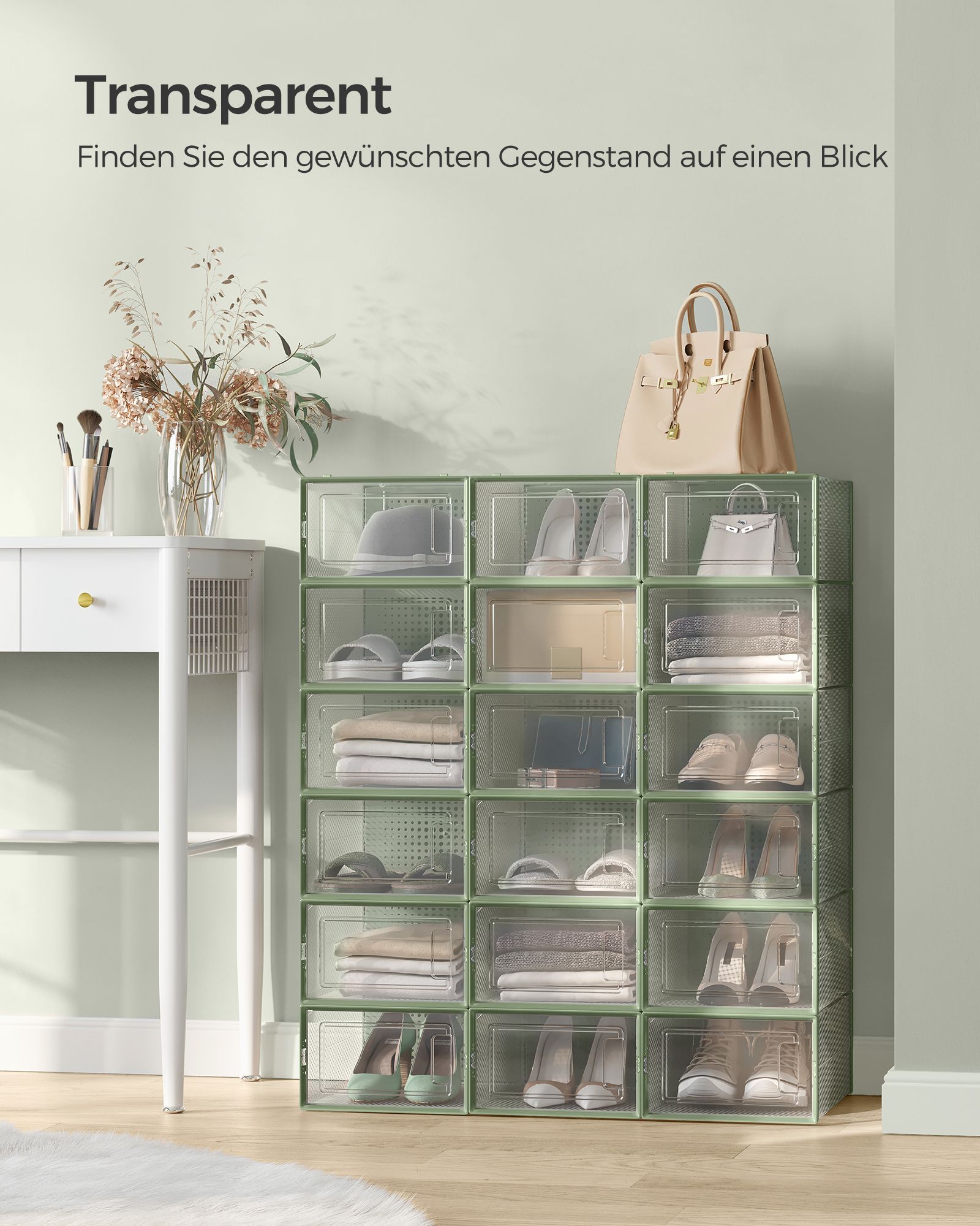 Šios žalios spalvos batų dėžės puikiai tiks tiek namų, tiek biuro aplinkoje, suteikdamos jūsų erdvei švaros ir tvarkos pojūtį. Investuokite į kokybę ir stilių su mūsų batų dėžėmis!