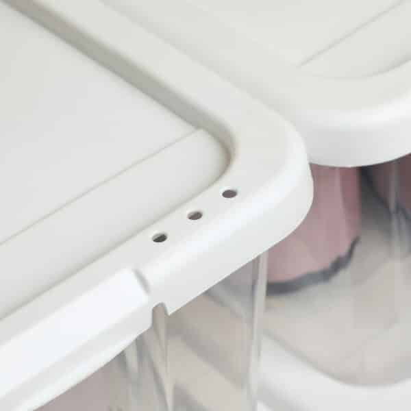Praktiška laikymo priemonė, kuri taip pat taupo vietą. Tiesiog sudėkite vieną dėžę ant kitos, nereikia surinkti.