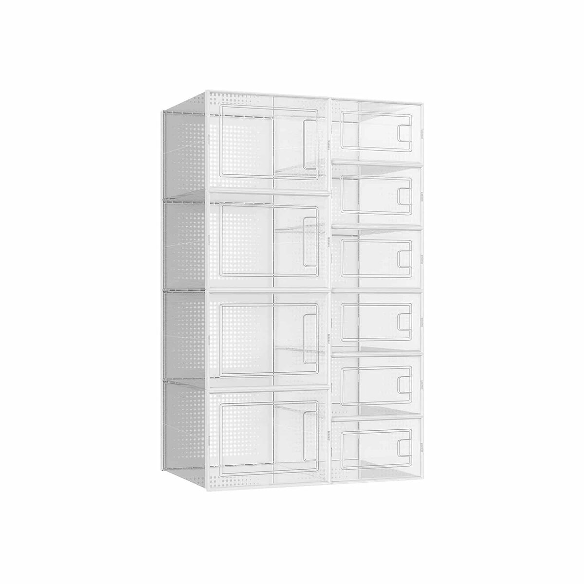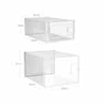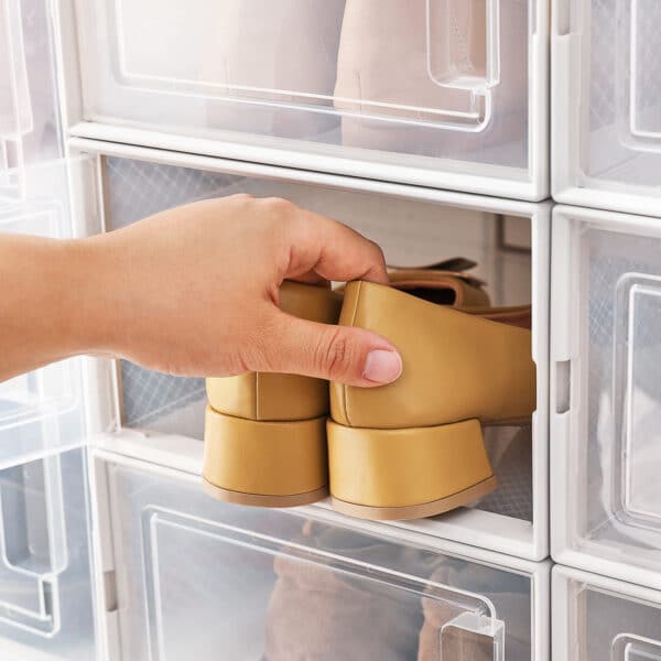 Įvairių tipų ir dydžių batai telpa šiose dėžutėse ir gali būti laikomi be dulkių. Nesvarbu, ar tai vyriški ar moteriški batai, basutės ar bėgimo bateliai, šiame 10 batų dėžučių rinkinyje (4 mažos ir 6 didelės) tilps visi. Dar geriau yra tai, kad kelias tokias dėžes galima sukrauti vieną ant kitos, kad sutaupytumėte vietos, todėl puikiai tinka jūsų koridoriui, drabužių spintai ar sandėliavimo lentynai.