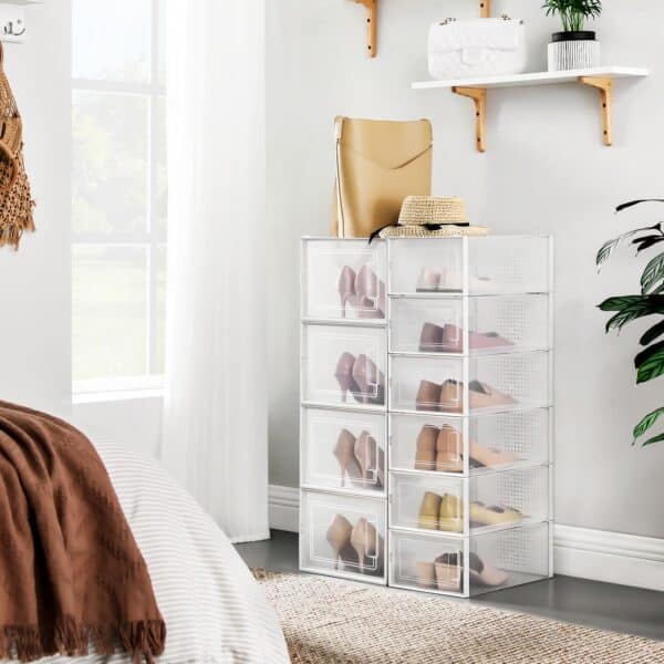 Ar kiekvieną kartą tiesiog metate batus į spintą, po kurio laiko palikdami chaotišką batų krūvą? Atsikratykite šio blogo įpročio! Įsigykite šias 10 batų dėžučių ir laikykite visus batus tvarkingai pagal tipą. Šios skaidrios batų dėžės padės jums palaikyti tvarką ir švarą namuose.