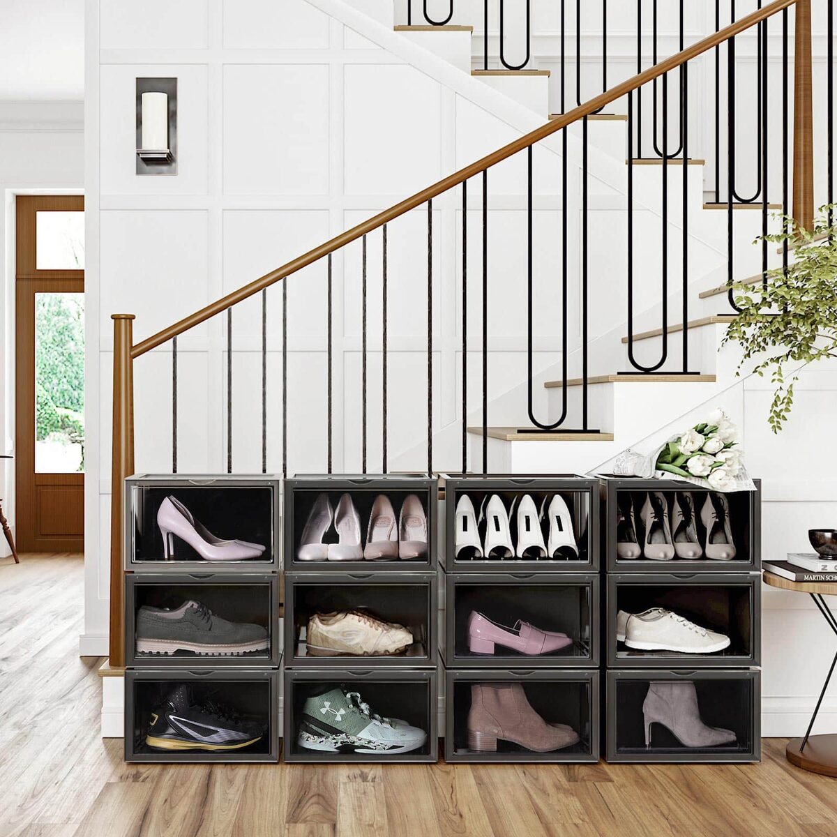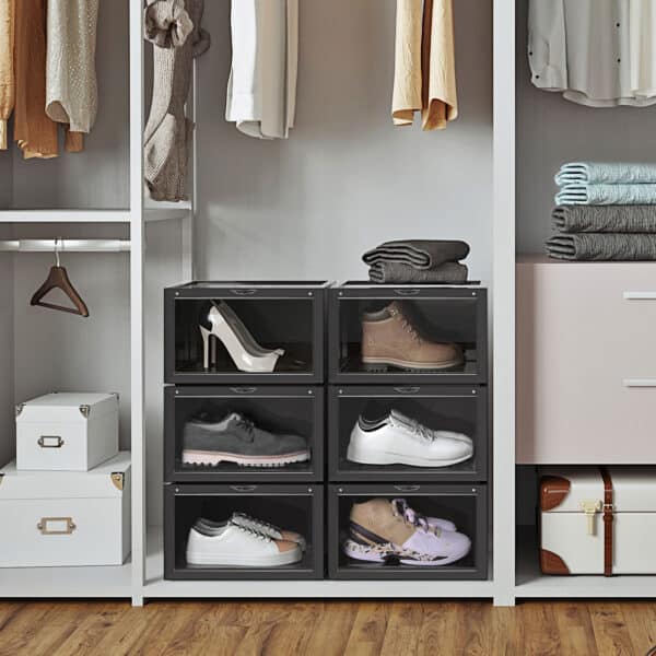 Šios dėžės tinka įvairiems batams – nuo sportbačių iki aukštakulnių ar kulkšnies batų, kurių dydis iki 46. Visi jie puikiai telpa į šias plastikines dėžutes ir gali būti laikomi stilingai.