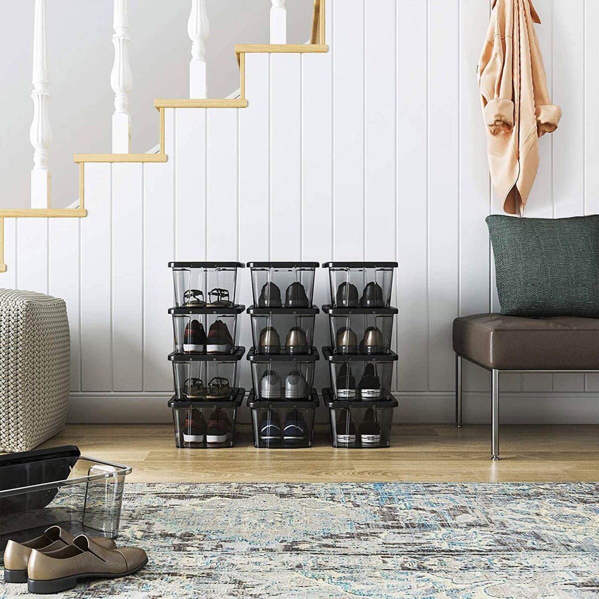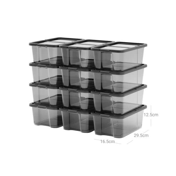 Šis batų dėžučių rinkinys, kurį sudaro 12 vienetų, yra puikus sprendimas tvarkingam ir patogiam batų laikymui. Kiekviena dėžutė yra su baltu dangteliu ir permatoma dėžute, leidžiančia lengvai matyti jos turinį.