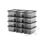 Pagamintos iš aukštos kokybės PP medžiagos, šios dėžutės yra tvirtos ir ilgaamžės. Jų matmenys yra 35 x 20 x 12,5 cm , o kiekvienos dėžutės svoris siekia 235 g, todėl jos yra lengvos ir lengvai pernešamos.