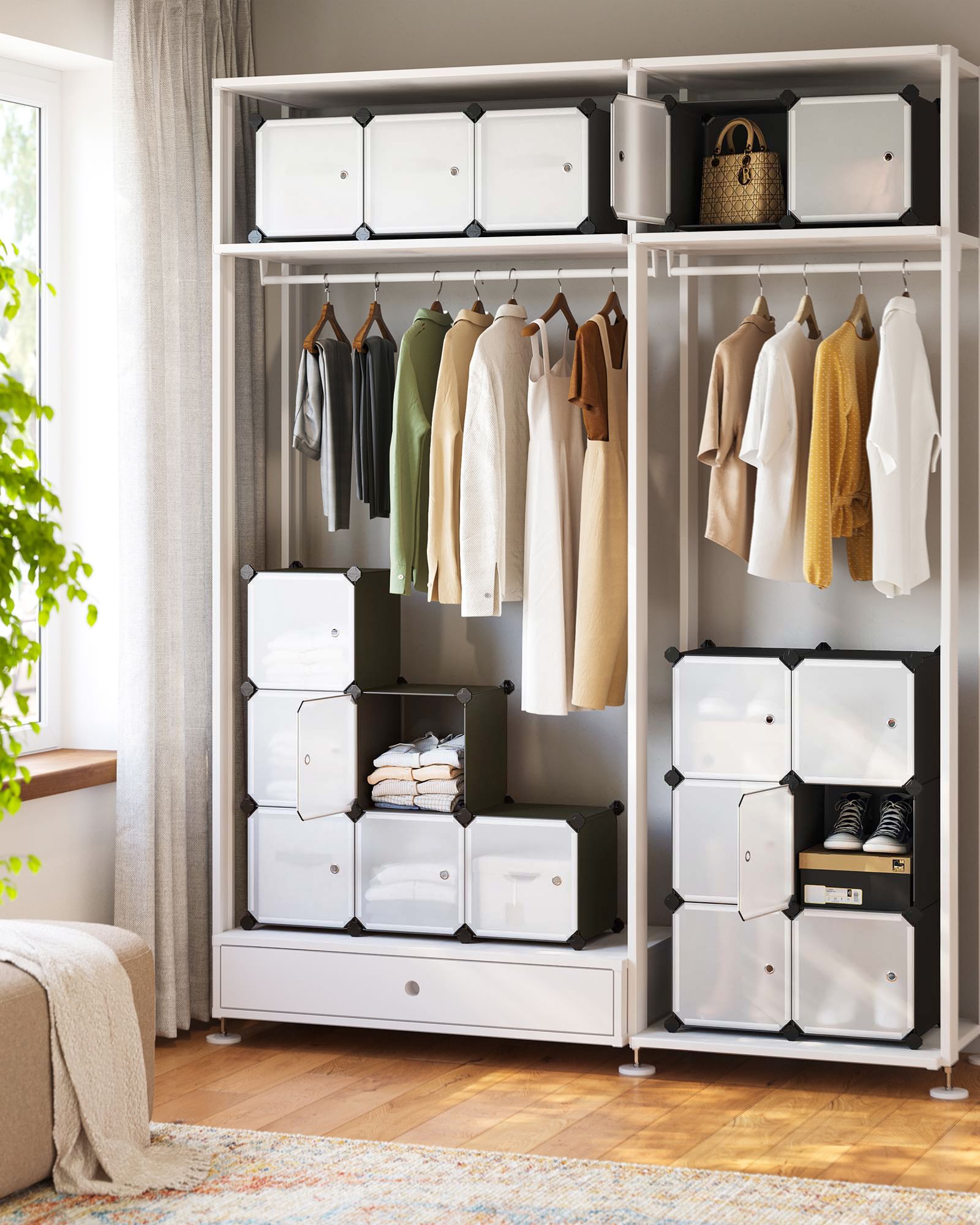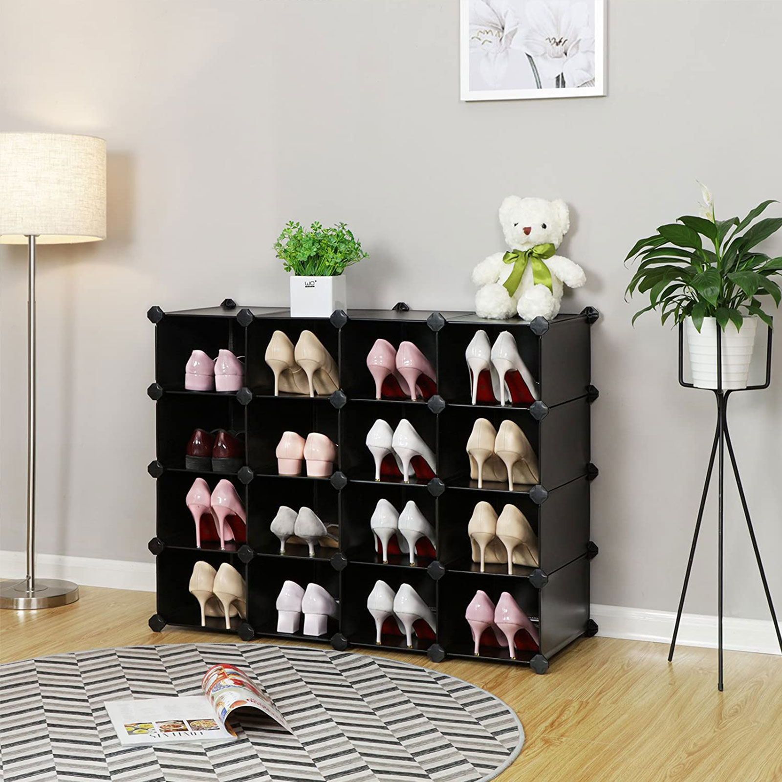 Ši batų lentyna yra puikus sprendimas jūsų avalynės ir aksesuarų laikymui. Juodos ir baltos spalvos derinys suteikia modernumo ir stiliaus jūsų interjerui.
