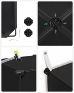 Pagaminta iš aukštos kokybės PP plastiko plokščių su metaliniu vielos rėmu ir ABS plastiko jungtimis, ši lentyna yra tvirta ir ilgaamžė. Galimi du dydžiai: 15 kubelių (153 x 31 x 153 cm) ir 16 kubelių (123 x 31 x 123 cm). Kiekvienos plastikinės plokštelės dydis yra 30 x 30 cm, o bendras svoris siekia 10,7 kg.