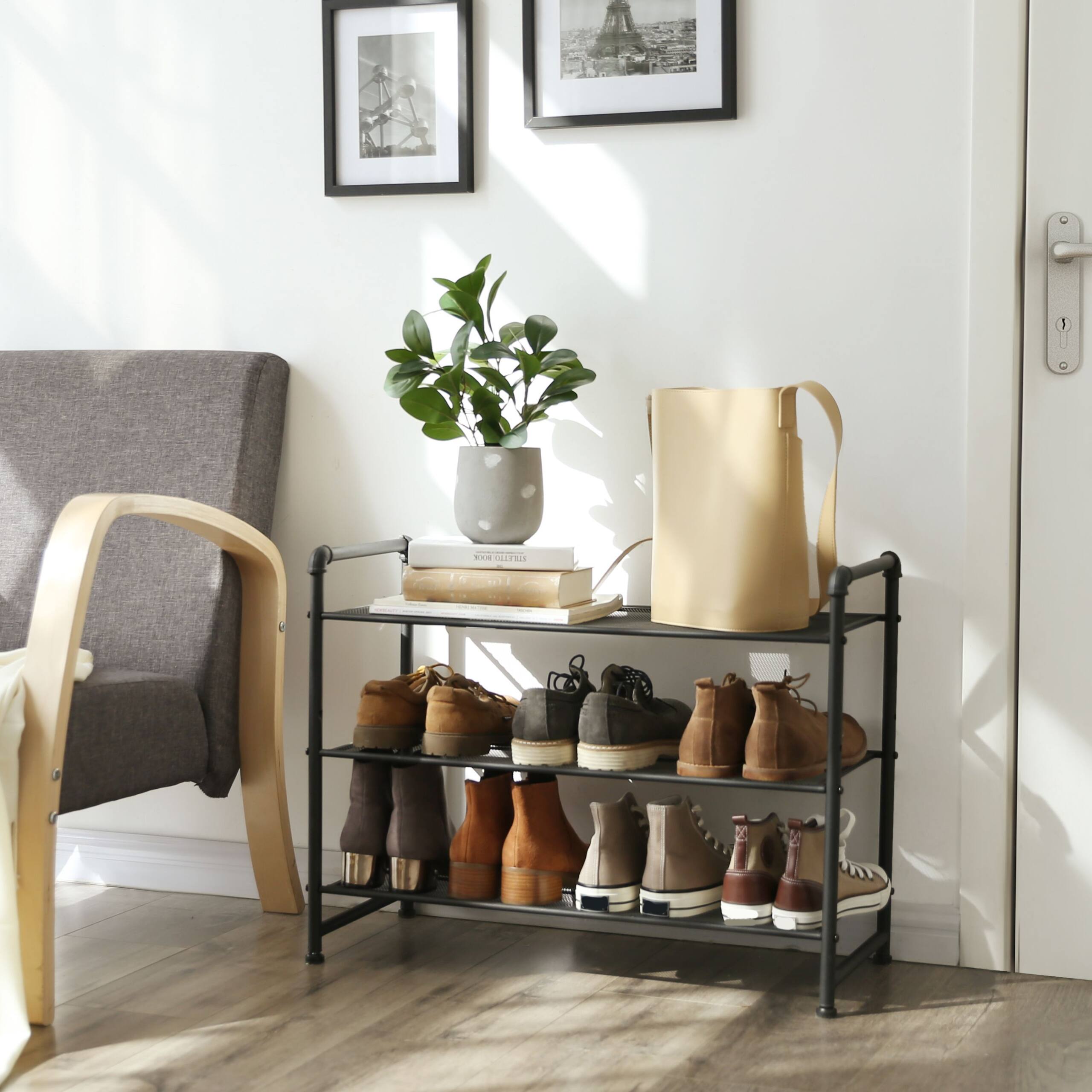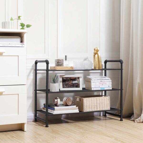 Batų lentyna, 3 lygių iki 12 batų poru, juodos spalvos