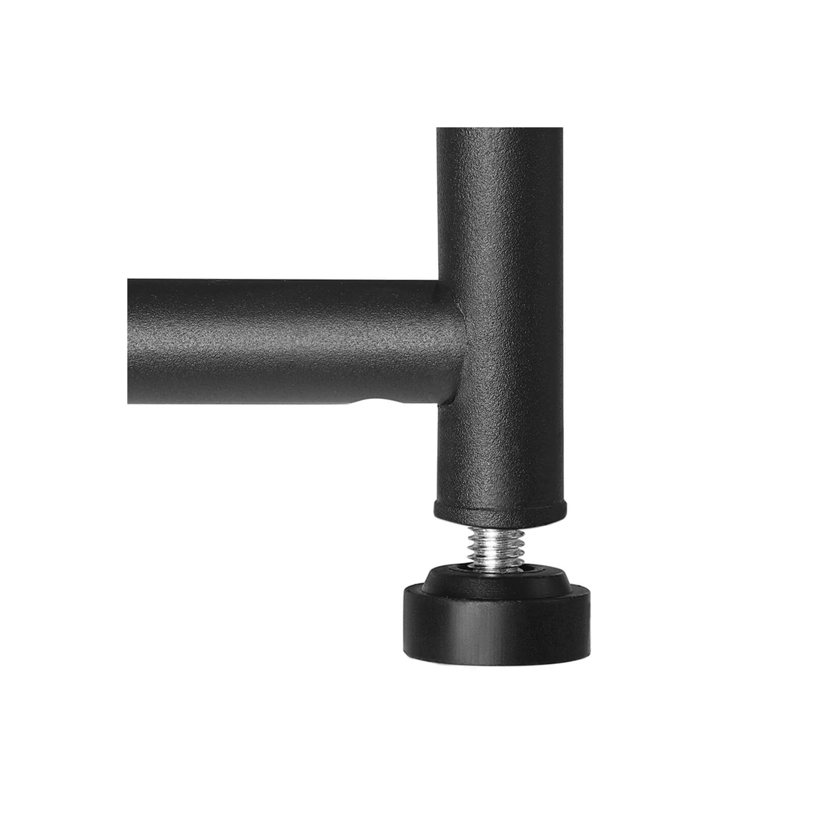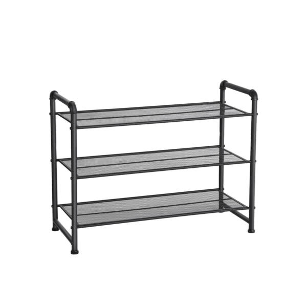 Pramoninis dizainas su vandens vamzdžiais ir grūdėta, matine juoda apdaila suteikia šiai batų lentynai šiek tiek gamyklinio prašmatnumo jūsų namams. Tanki tinklinė viela užtikrina, kad smulkūs daiktai nenukristų nuo lentynos, todėl net stiletai nekelia pavojaus.