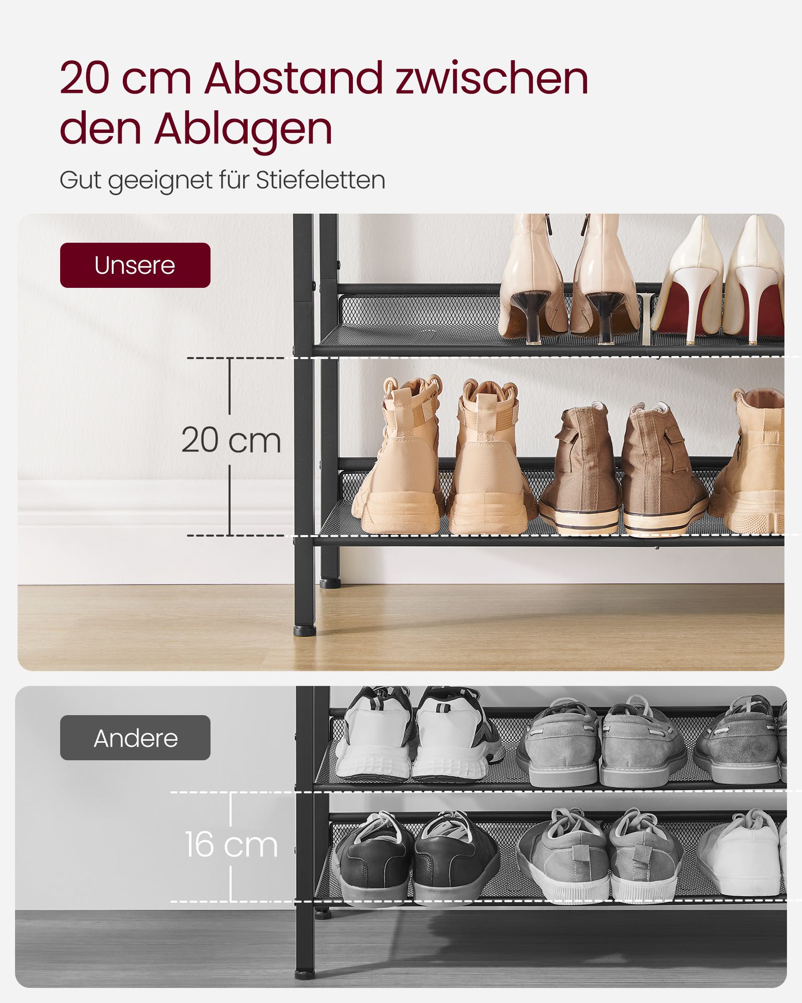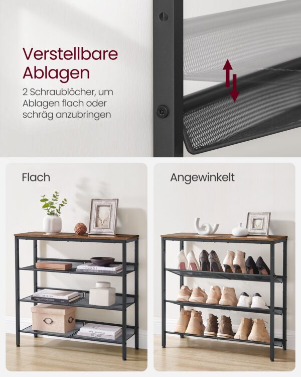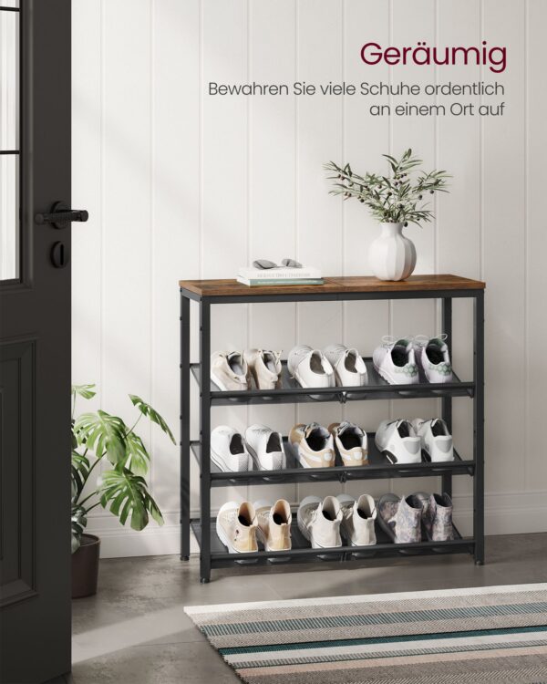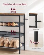 Ši batų lentyna yra puikus pasirinkimas tiems, kurie vertina kokybę ir dizainą. Jos tvirtas plieninis rėmas ir medžio drožlių plokštės užtikrina ilgaamžiškumą ir stabilumą, o vintažinė spalvų paletė suteikia elegancijos. Nesvarbu, ar ją naudosite prieškambaryje, ar miegamajame, ši lentyna padės jums išlaikyti tvarką ir stilių.