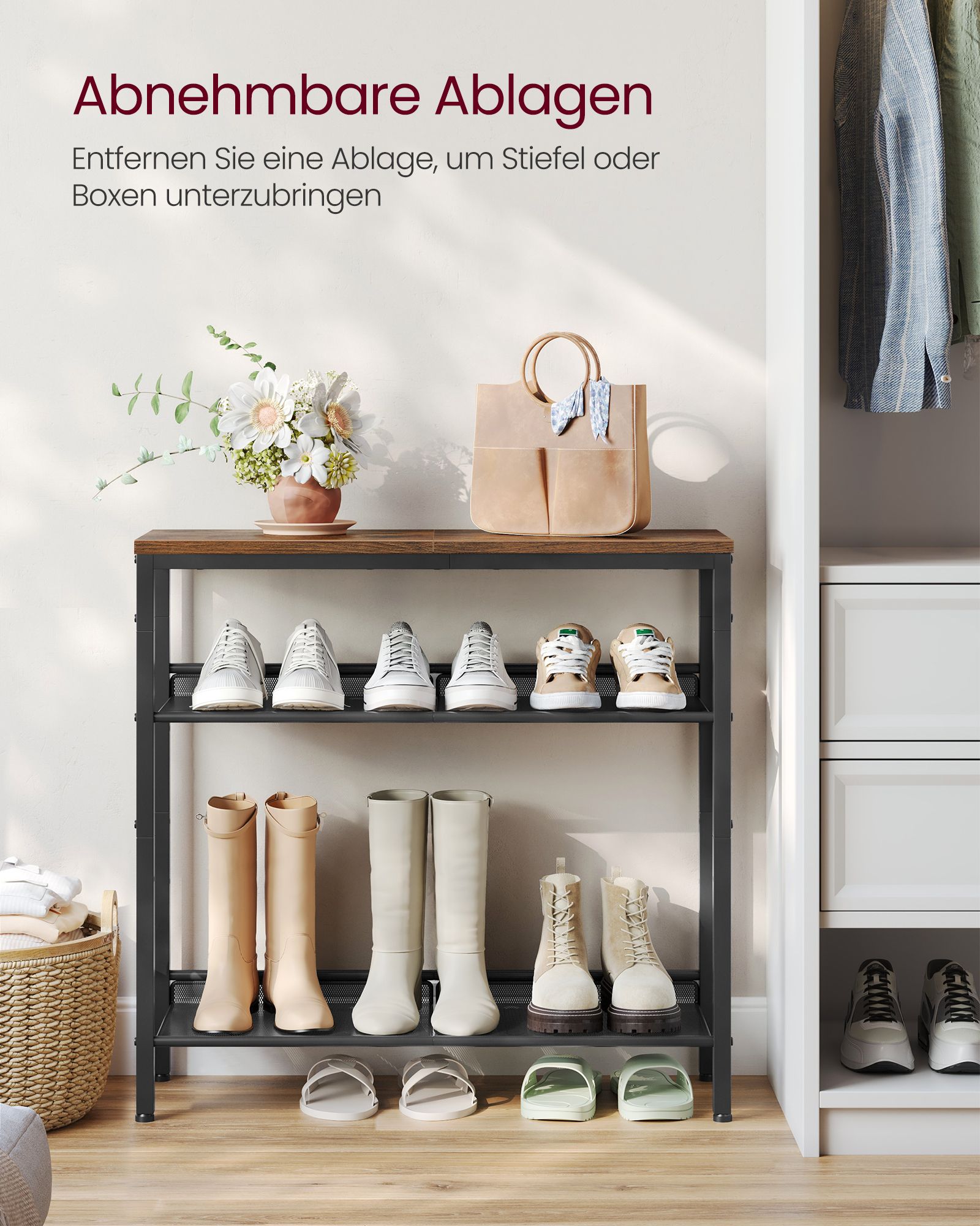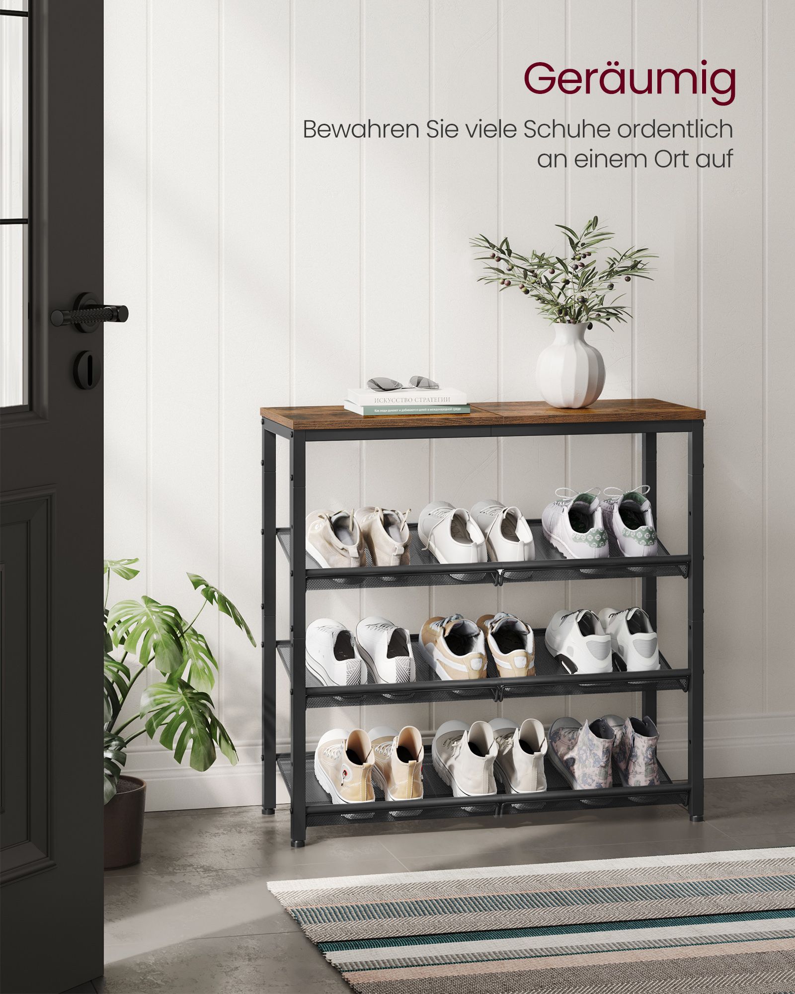 Pristatome elegantišką ir funkcionalią batų lentyną, kuri puikiai derės prie bet kokio interjero. Ši lentyna ne tik padės palaikyti tvarką jūsų namuose, bet ir suteiks jiems stilingą akcentą.