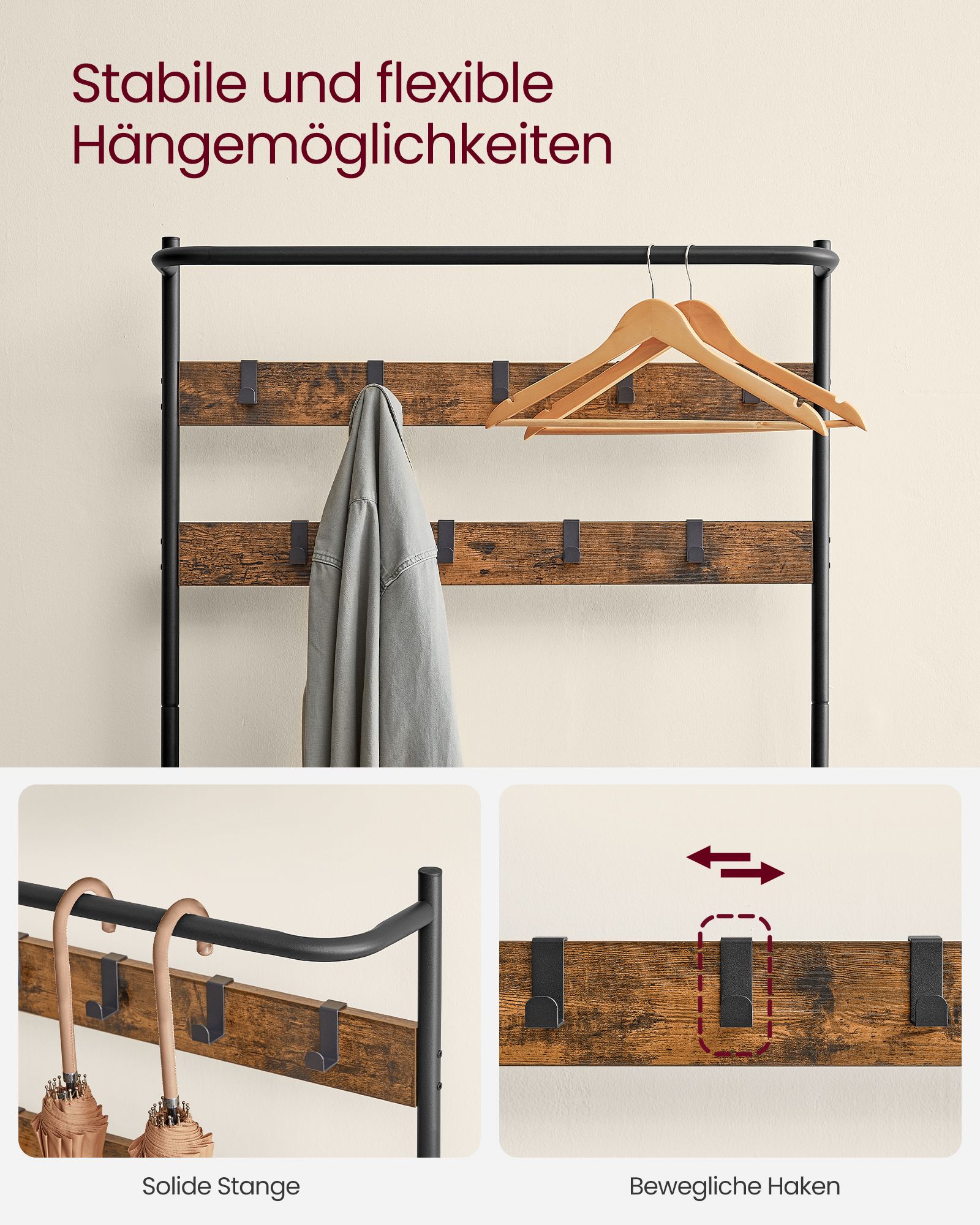 Maksimali statinė apkrova vienam kabliui: 3 kg