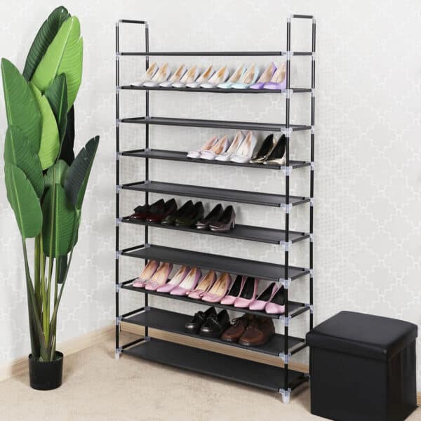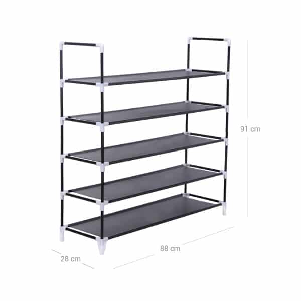 Praktiško ir elegantiško stiliaus prašmatni batų lentyna yra lengva, bet stabili. Songmics lentyna savo minimalistiniu grožiu tinka bet kokiam interjerui! 5 lygiai puikiai atrodo rūsyje, vaikų kambaryje, koridoriuje ar net palėpėje ir turi vietos 20 porų batų, kuriuos galima aiškiai laikyti. Lentyną lengva surinkti ir išardyti. Turėtumėte įsitikinti, kad padengta lentynų pusė yra nukreipta į viršų. Lentynas galima lengvai nuvalyti drėgna šluoste.
