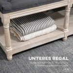 Suteikite savo namams skoningą vintažinį įspūdį su šiuo elegantišku HOMCOM batų suoliuku. Šis stilingas prieškambario suoliukas sujungia funkcionalumą ir estetiką: kvėpuojantis medžiaginis užvalkalas ir įmantrūs sagų susiuvimai patraukia kiekvieno dėmesį. Šešios meistriškai išlenktos kojelės puikiai dera su dekoratyviu interjeru ir suteikia stabilią atramą. Po sėdyne yra praktiška vieta knygoms, žaislams ar antklodėms, o tai užtikrina tvarką.