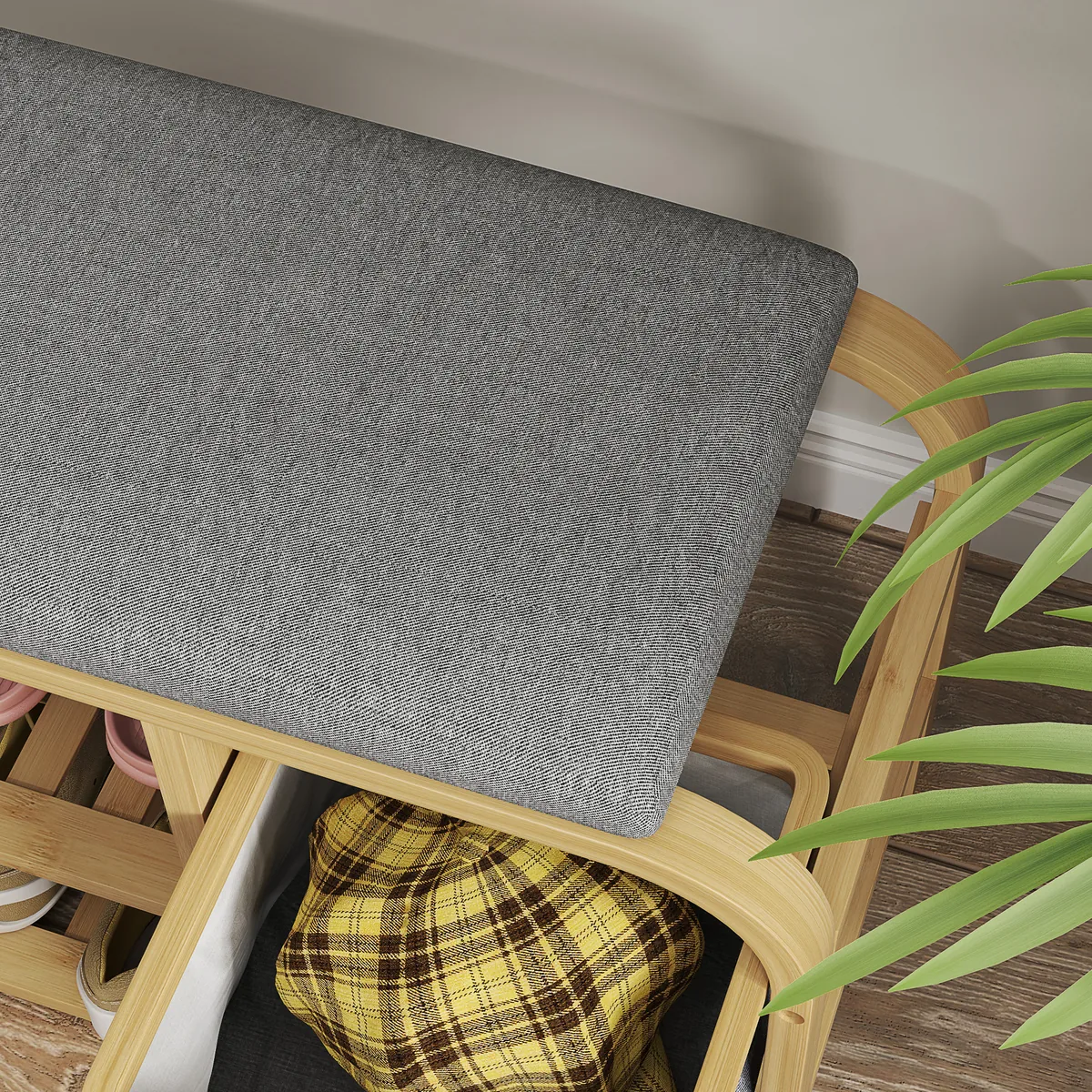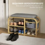 Suteikite savo prieškambariui naują išvaizdą naudodami bambukinę HOMCOM batų lentyną, kurioje dizainas ir praktiškumas. Minkšta, liną primenanti pagalvėlė Jūsų laukia, kol tvarkingai laikote iki penkių porų batų. Smulkesni daiktai po ranka? Ištraukiamas medžiaginis krepšelis puikiai tinka ir sklandžiai susilieja su elegantišku lakuoto bambuko rėmo dizainu.