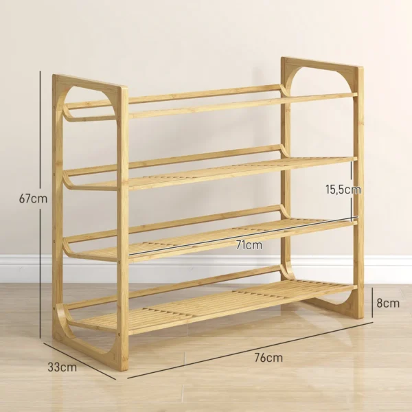 Atraskite puikų sprendimą savo batų laikymui naudodami HOMCOM batų lentyną, pagamintą iš tvirto bambuko. Šioje stilingoje batų lentynoje telpa iki 12 batų porų, o lentynos yra šiek tiek nuožulnios, kad jie neslystų. Dėl savo kompaktiško dizaino batų stovas idealiai tinka mažose erdvėse. Suteikite savo namams tvarkos ir elegancijos su šia praktiška batų lentyna. Sukurkite daugiau erdvės ir mėgaukitės tvarkinga atmosfera.