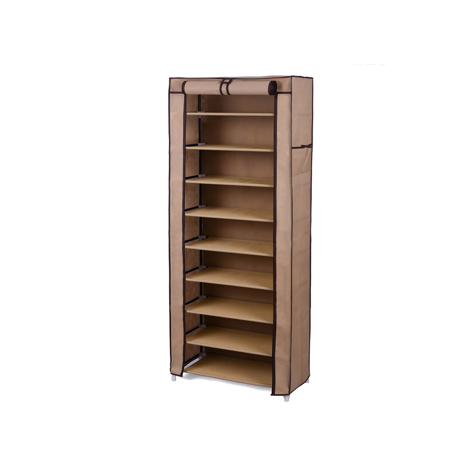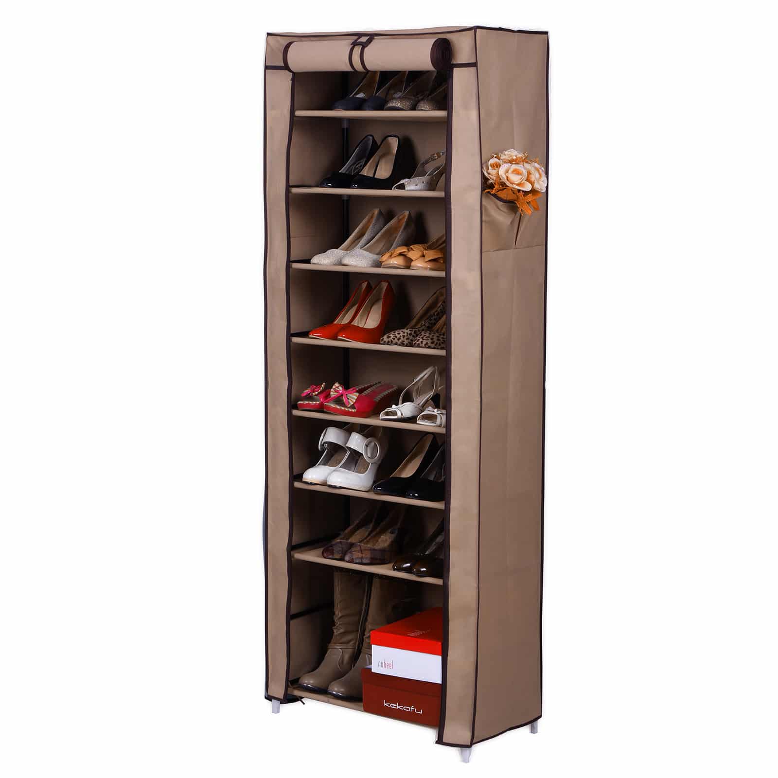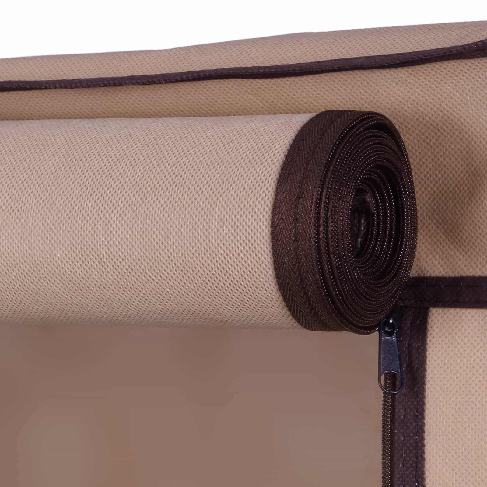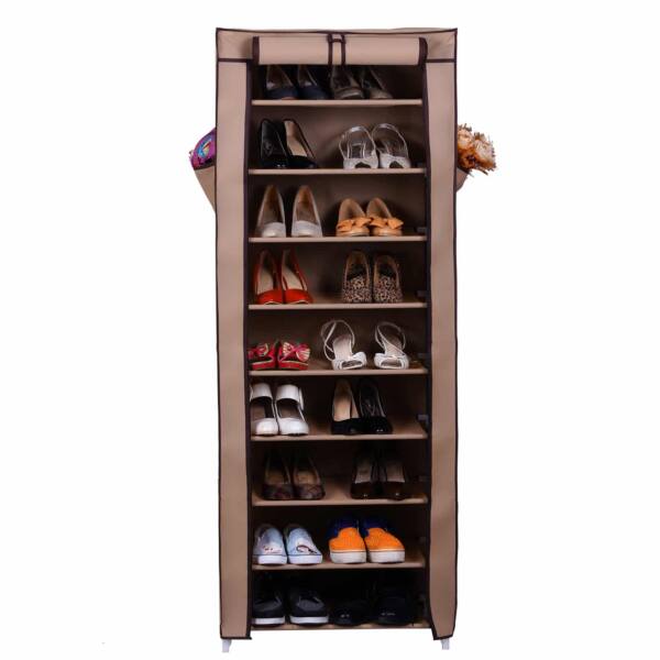 Ar rūbinėje, ar įėjimo zonoje, ar miegamajame: prašmatni batų lentyna su užvalkalu 58 cm rudos spalvos tinka bet kokiai aplinkai. Kiekvienoje batų lentynoje telpa 3 poros moteriškų arba 2 poros vyriškų batų. Durų uždanga su Velcro užsegimais ir užtrauktukais apsaugo jūsų batus nuo dulkių ir nešvarumų. Tai reiškia, kad jūsų batai daugiau niekada nebus išmėtyti, o bus tvarkingai išdėstyti naujoje lentynoje. Viskas tvarkinga ir aišku.