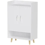 Dėl paprastos, plonos ir modernios išvaizdos HOMCOM batų spintelė tinka įvairiems interjero stiliams. Batų kabykla su paslėpta spintele ir dviem atviromis lentynomis batams ir aksesuarams laikyti yra praktiškas sprendimas mažesniuose įėjimuose ar koridoriuose.