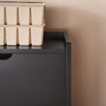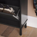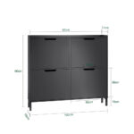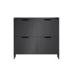 Ši juodos spalvos batų spintelė 100x19x90 cm yra puikus sprendimas jūsų avalynės laikymui. Skirtingai nuo daugelio kitų spintelių, mūsų batų spintelė turi keturias atverčiamas duris, kurios lengvai atidaromos ir uždaromos naudojant rankenas. Ji taip pat puikiai tinka siauriems koridoriams.