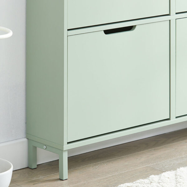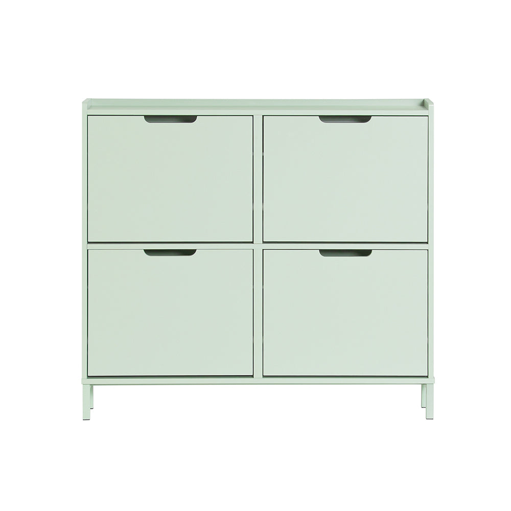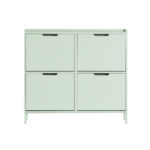 Ši batų spintelė 100x19x90 cm, šviesiai žalios spalvos, yra puikus sprendimas jūsų batų laikymui. Skirtingai nuo daugelio kitų spintelių, mūsų batų spintelė turi keturias atverčiamas duris, kurias lengva atidaryti ir uždaryti naudojant rankenas. Ji puikiai tinka net ir siaurose erdvėse.