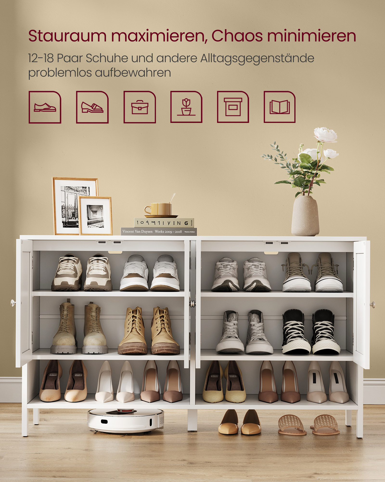 Įneškite elegancijos ir tvarkos į savo namus su šia stilinga batų spintele. Jos minimalistinis dizainas ir debesų baltos spalvos apdaila puikiai derės prie bet kokio interjero, suteikdama jūsų erdvei švaros ir šviesos pojūtį.