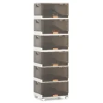 Batų spintelė 37,5×27,5×121 cm, rudos ir baltos spalvos, yra praktiškas sprendimas patogiam batų ir kitų daiktų laikymui. Dėl modulinio dizaino ir didelės talpos ji tinka įvairiems namų organizavimo poreikiams.
