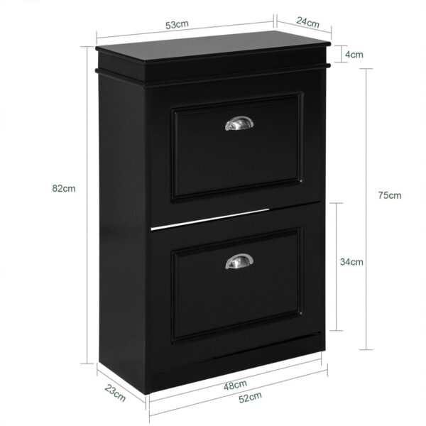 Batų spintelė 53x24x82 cm, juodos/sidabrinės spalvos, yra puikus sprendimas jūsų batų laikymui ir organizavimui. Ši spintelė ne tik padeda išlaikyti tvarką, bet ir taupo vietą jūsų namuose.