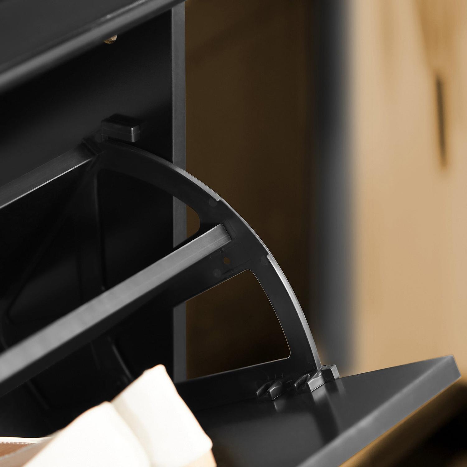 Batų spintelės dizainas užtikrina, kad jūsų batai turės pakankamai ventiliacijos ir erdvės, kad išliktų švieži ilgiau. Be to, jos universalus dizainas leidžia lengvai priderinti prie kitų interjero elementų.