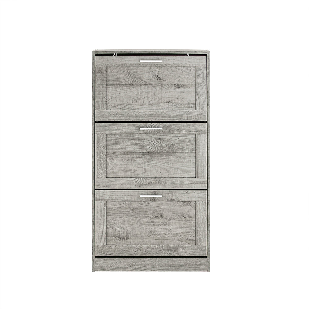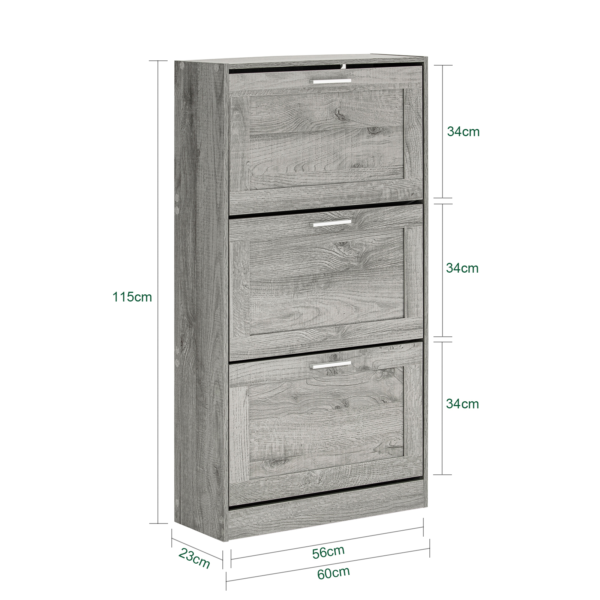 Batų spintelė 60x23x115 cm, pilkos/sidabrinės spalvos, yra puikus sprendimas jūsų batų laikymui ir organizavimui. Ši spintelė su trimis sulankstomais skyriais leidžia laikyti batus tvarkingai ir nepasiekiamoje vietoje, taip padedant išvengti chaoso jūsų prieškambaryje.