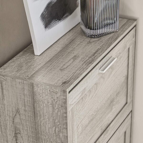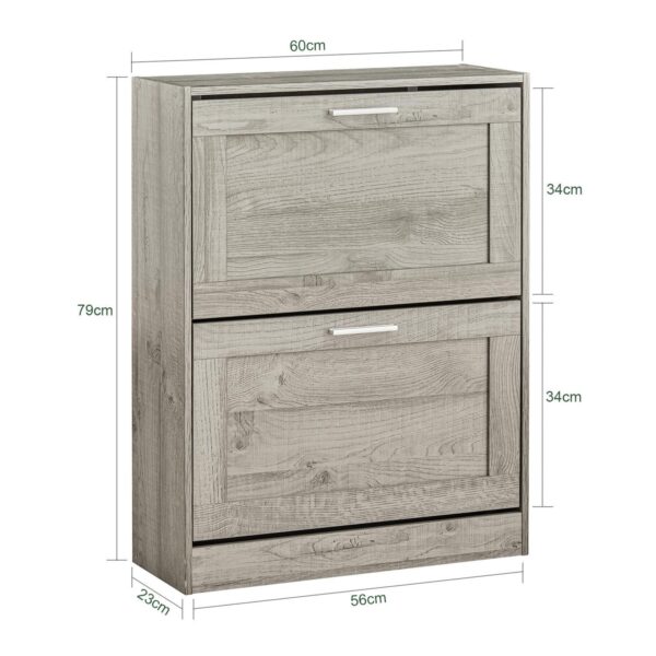 Batų spintelė 60x23x79cm, pilkos/sidabrinės spalvos, yra puikus sprendimas visos šeimos batų ir aulinukų laikymui. Jos daugiasluoksnis dizainas ir reguliuojamos lentynos suteikia galimybę optimaliai išnaudoti erdvę.