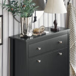 Batų spintelė 80x25x108cm, juodos/sidabrinės spalvos, yra puikus sprendimas jūsų batų laikymui miegamajame ar prieškambaryje. Ši spintelė padės išvengti netvarkos, kai batai išmėtyti ant grindų, ir sukurs šiltą bei jaukią atmosferą jūsų namuose.