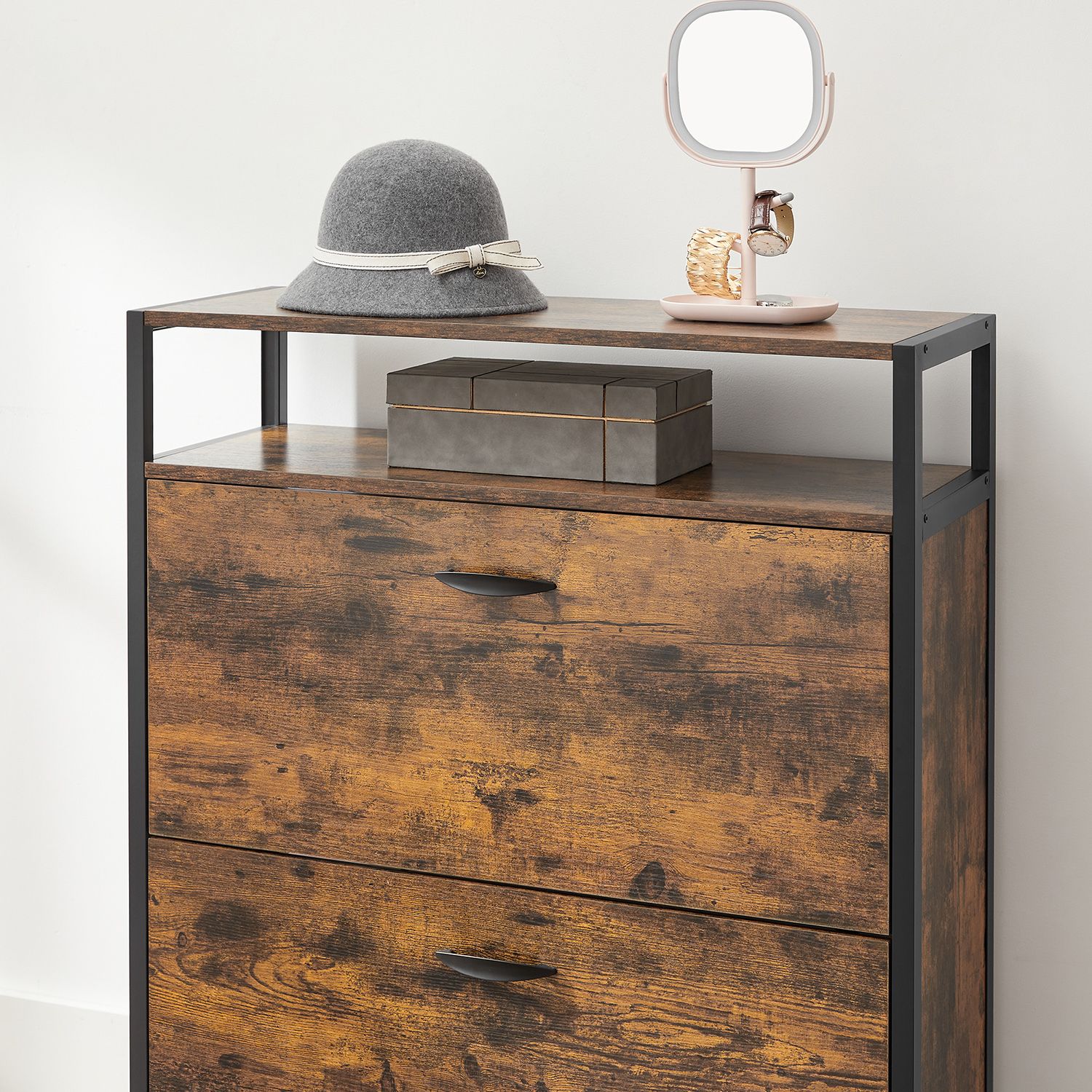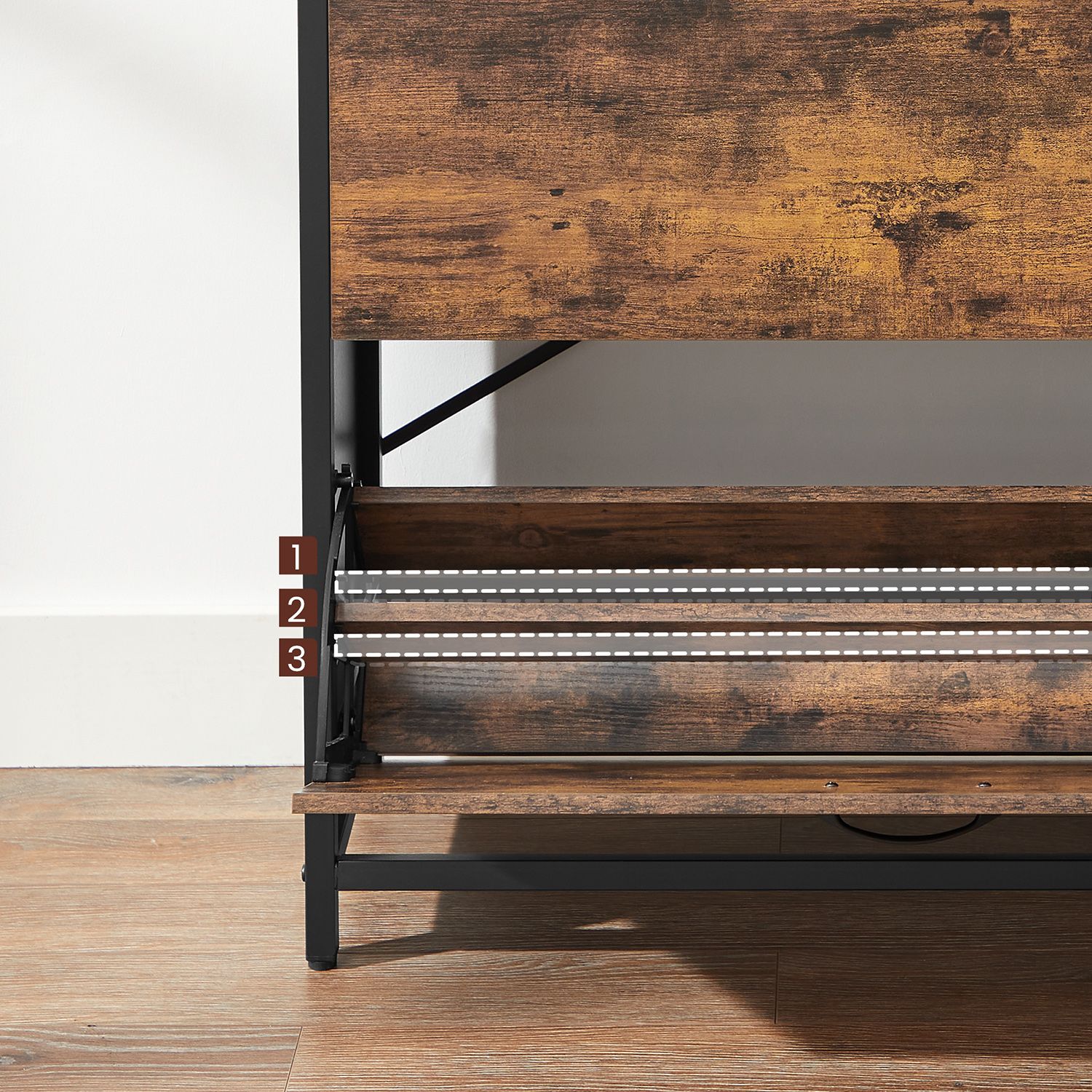 Ši batų spintelė yra pagaminta iš aukštos kokybės medžiagų, užtikrinančių ilgaamžiškumą ir patikimumą. Jos vintažinė ruda ir juoda spalvos suteikia elegancijos ir modernumo pojūtį, todėl ji puikiai tiks tiek klasikiniame, tiek šiuolaikiniame interjere.