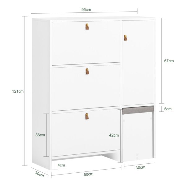 Ši batų spintelė 95x30x121 cm yra puikus sprendimas jūsų batų laikymui ir organizavimui. Jos dizainas leidžia lengvai pritaikyti ją įvairiems poreikiams ir derinti su kita interjero įranga.