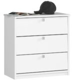 – Spintelė pagaminta iš dilimui atsparios laminuotos plokštės – Durų fasadai pagaminti iš laminuotos plokštės – Varstomos durys – Varstomų durų viduje yra 3 lentynos – Matomi kraštai uždengti ABS apvadas, kad padidintų atsparumą pažeidimams – Satino spalvos durų rankenos – Spintelė, skirta montuoti savarankiškai – Pateikiamas vadovas – 24 mėnesių garantija Tvarkos palaikymas salėje dažnai yra nemenkas iššūkis. Striukės, batai ir aksesuarai, kuriuos apsivelkame prieš išeidami, dažnai yra pasmerkti netvarkai. Salė taip pat kelia daug problemų, kai reikia pasirinkti tinkamus baldus. Todėl šiame kambaryje verta sutelkti dėmesį į mažus, bet funkcionalius baldus. Mūsų mini baltų batų spintelė puikiai tiks kiekvienoje salėje. Batų spintelė kompaktiška, tačiau joje tilps kiekvieno batai. Balta spalva neabejotinai yra mūsų spintos privalumas, nes spinta lengvai įsilies į bet kokį dekorą. Laminuota plokštė, iš kurios pagaminta spinta, yra atspari mechaniniams pažeidimams, o tai ypač svarbu dažnai lankomoje patalpoje, pavyzdžiui, prieškambaryje. Papildoma apsauga suteikiama kraštą apvyniojus ABS briauna, kuri apsaugo tiek spintelę nuo pažeidimų, tiek buities narius nuo nemalonių smūgių. Spintelę sudaro trys lentynos, kurios leidžia rūšiuoti batus pagal savo poreikius.