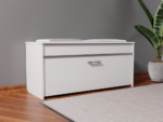Batų spintelė su paminkštinta, dirbtine oda dengta sėdimąja dalimi;