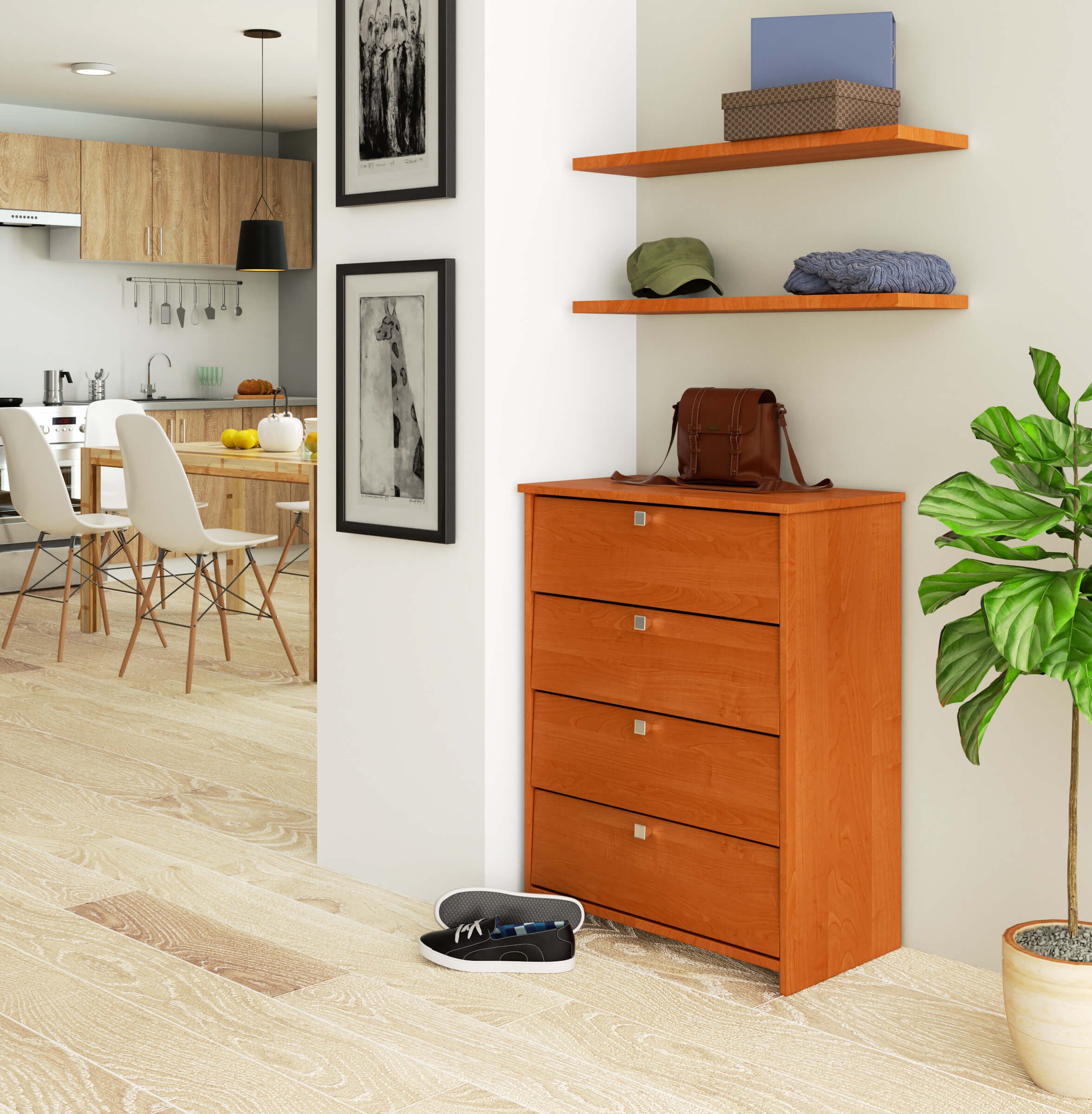 Rubino alksnio batų spintelė yra ir estetiška, ir funkcionali. Baldas tiks tiek didelėje, tiek mažesnėje salėje. Spintoje yra keturios erdvios lentynos su atverčiamomis durelėmis ir satino spalvos rankenomis. Spintelėje telpa visų dydžių batai, taip pat batų valymo reikmenys. Prieškambaryje įrengus batų spintelę, bus lengviau ją palaikyti. Baldas atrodo taip įspūdingai, kad derės prie elegantiškiausio prieškambario dekoro, nepaisant to, kokiu stiliumi buvo įrengtas kambarys. Baldo spalva universali, todėl spinta puikiai atrodys ir kartu su kabykla ar kitokio atspalvio spinta. Batų spintelė pagaminta iš laminuotos plokštės, kuri yra labai atspari trinčiai ir mechaniniams pažeidimams. Baldo kraštai apdailinti estetiška ir patvaria ABS fanera. Spintelę galima nušluostyti šlapiu būdu, todėl lengva išlaikyti nepriekaištingai švarius baldus. – Spintelė iš laminuotos plokštės, atspari trinčiai – Durų fasadai iš laminuotos plokštės – Atverčiamos durys – Varstomų durų viduje yra 4 lentynos – Matomi kraštai, padengti ABS briauna, padidina atsparumą pažeidimams – Satino durų rankenos – Savaiminio surinkimo spintelė – Instrukcija pridedama – Garantija 24 mėn.