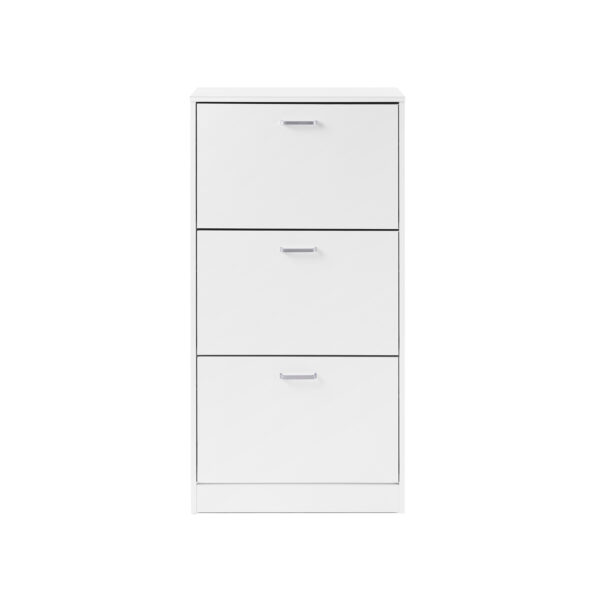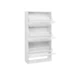 Ši balta batų spintelė su 3 atsiveriančiomis durelėmis yra puikus sprendimas tvarkingam batų laikymui. Pagaminta iš kokybiškos medienos drožlių plokštės, ji ne tik funkcionali, bet ir stilinga.