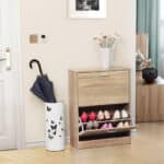 VASAGLE batų spintelė, pagaminta iš aukštos kokybės, aplinkai nekenksmingos medžio drožlių plokštė (MDP) (E1 klasė), atsidaro labai lengvai ir joje telpa 10–12 porų plokščių batų. Vos 24 cm gylio ši spintelė puikiai tinka siaurose patalpose. Kartu su spinta ar komoda jūsų prieškambaris visada bus tvarkingas. Jūsų įėjimo zona bus praturtinta šia elegantiška batų spintele. Naudodami VASAGLE batų spintelę, mėgausitės jos patogumu ilgus metus.