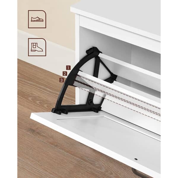 Batų spintelė su dangteliu LHS120T10 yra puikus sprendimas jūsų namų tvarkai palaikyti. Ši balta batų spintelė pagaminta iš kokybiškos medžio drožlių plokštė (MDP) , užtikrinančios ilgaamžiškumą ir patvarumą.
