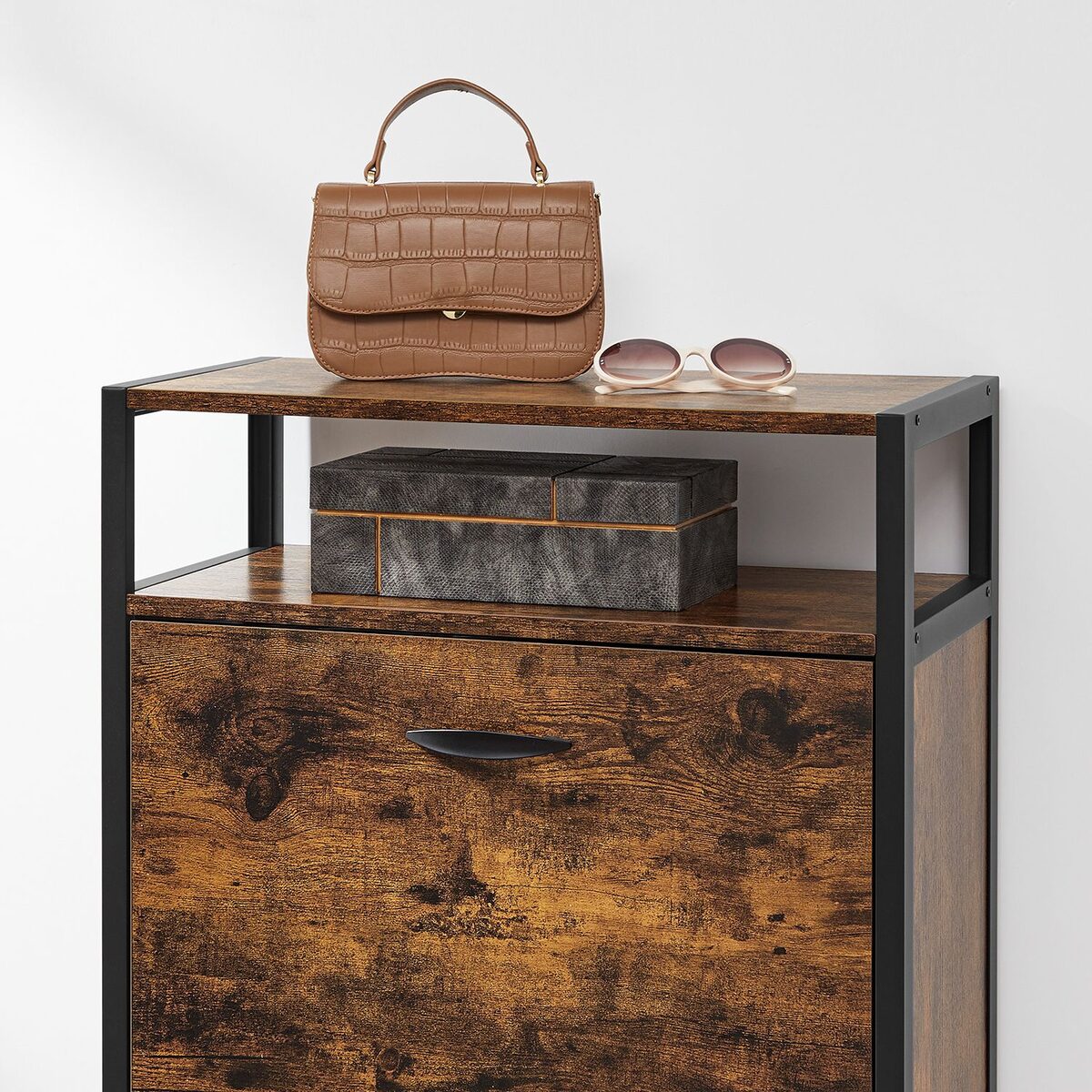 Ši batų spintelė su durelėmis LBS800B01 yra puikus pasirinkimas tiems, kurie vertina tiek funkcionalumą, tiek estetiką. Jos vintažinė ruda-juoda spalva suteikia interjerui elegancijos ir šilumos.